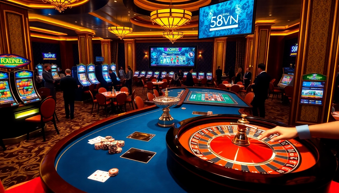 Experience luxury gaming at https://s8vn.press/ featuring a lively roulette table with players engaged.